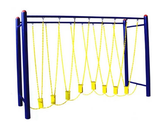 鍛煉方法:手扶吊桿,從吊橋一端走向另一端為一次。